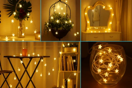 Original price was: $12.99.$6.99Current price is: $6.99.40 LED Battery-Powered Star String Fairy Lights – Warm White – Indoor & Outdoor Use