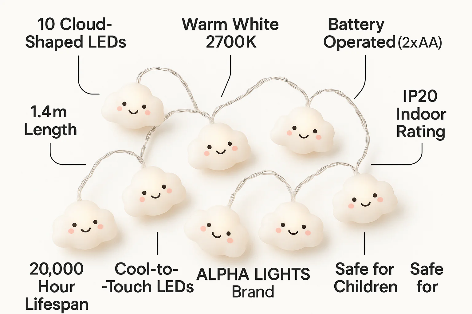 10 LED Cloud Fairy Lights – Battery Kids’ Nursery String Lights