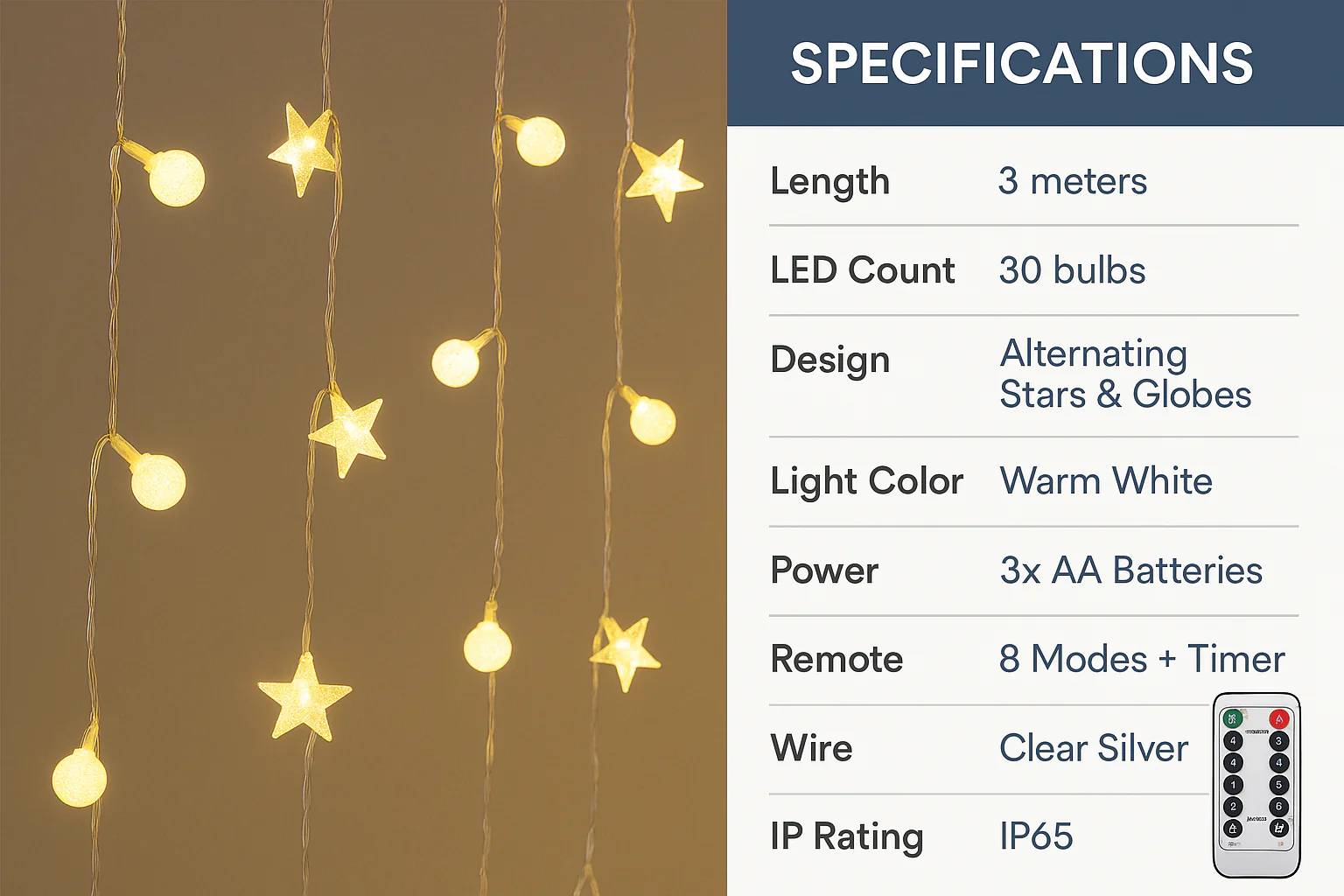 Choose from 8 lighting modes with the simple push of a button or remote control to create romantic, twinkling, or steady lighting effects. With an rating, they are built to shine through rain or shine—making them ideal for weddings, holidays, or year-round use across the UK.