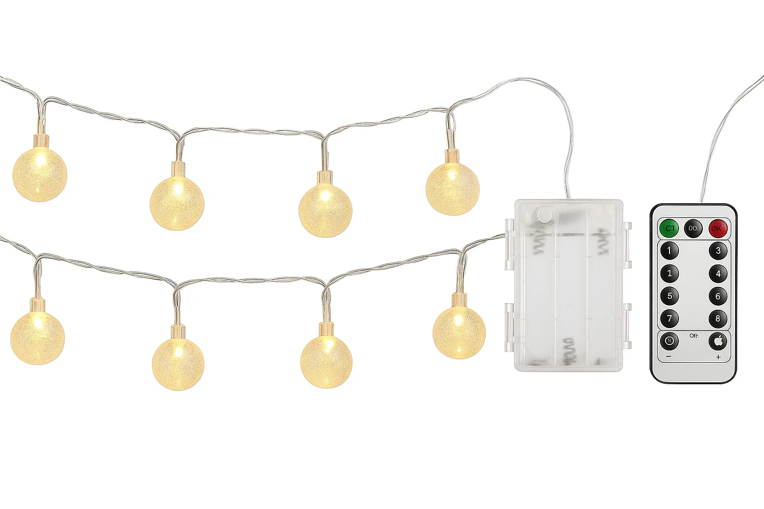 20 warm white LED globe lights on a 3-meter string