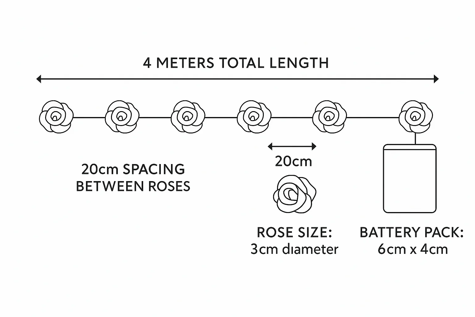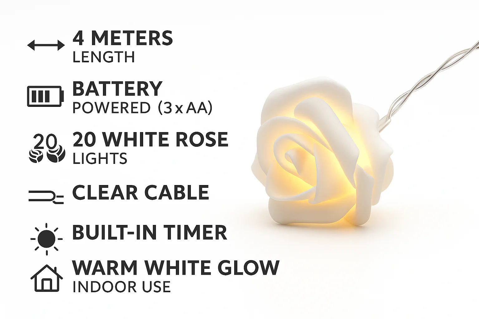 4m White Rose Flower LED Battery Fairy String Lights – UK
