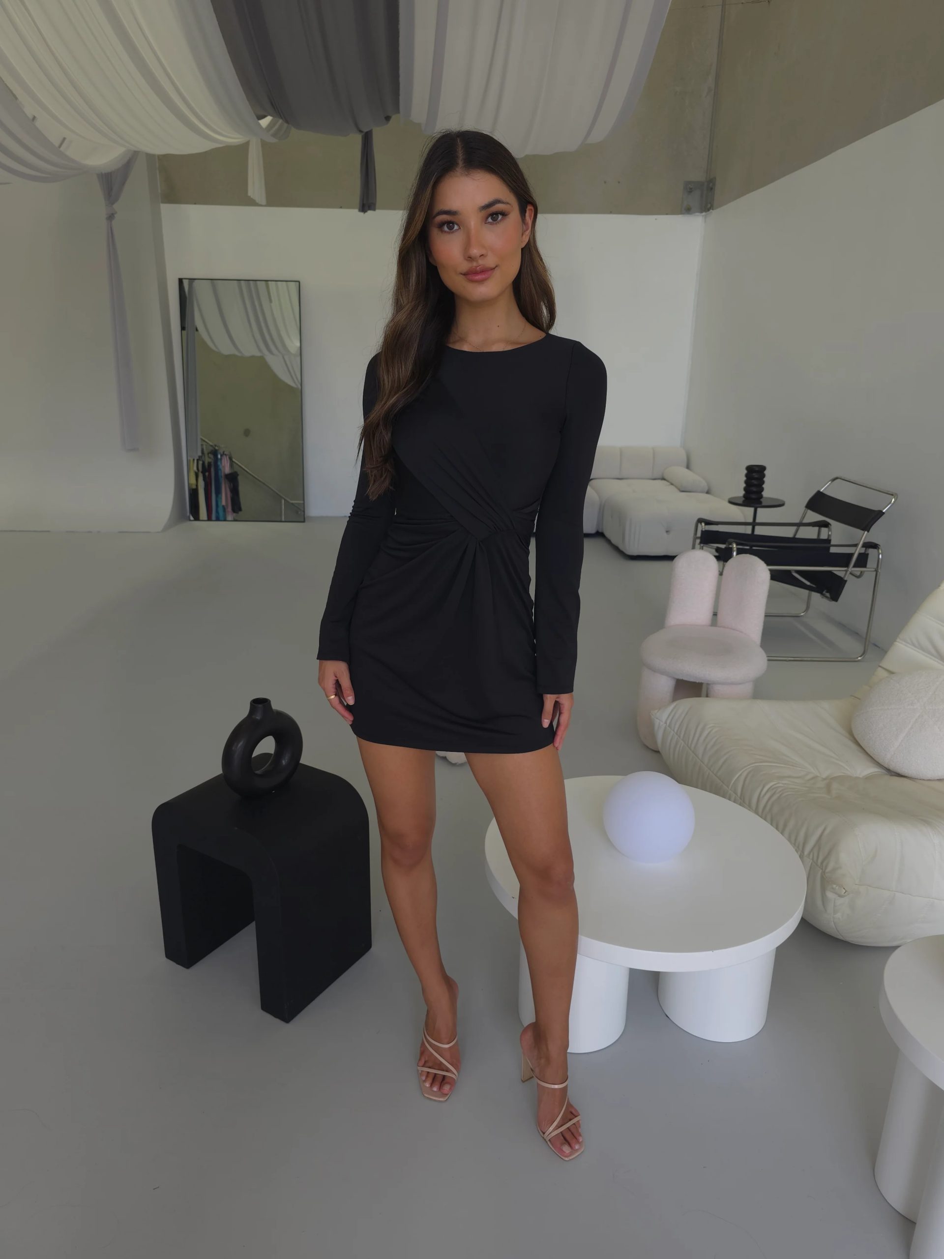 This elegant black long sleeve dress is the perfect addition to any wardrobe, offering a sleek and sophisticated look. Its timeless design ensures that you will always be in fashion, no matter the occasion.