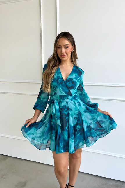 This elegant blue dress showcases a sophisticated design that is perfect for any occasion. Crafted from a blend of high-quality polyester and soft rayon, this dress promises comfort while maintaining a stunning look. The fabric is lightweight and breathable, making it an ideal choice for all-day wear.