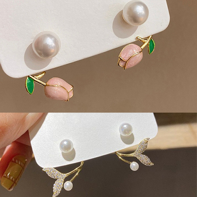 Material: The earrings are made of pearl material.