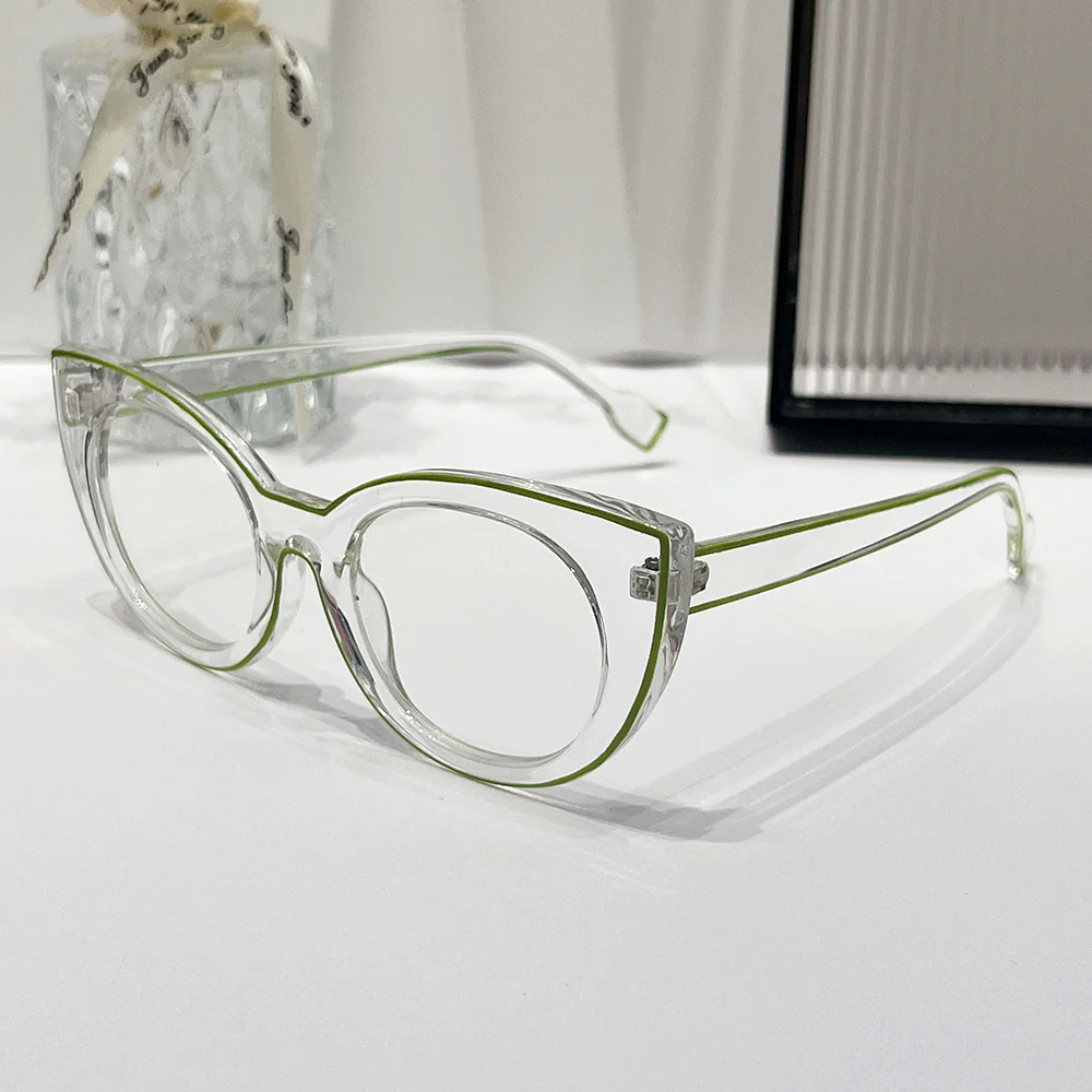 The Vintage Pink-Edged Cat-Eye Glasses are a stylish addition to any eyewear collection, featuring a unique blend of playful design and practicality. The frame of these glasses is crafted from high-quality plastic, ensuring durability while maintaining a lightweight feel for comfortable wear throughout the day. The prominent pink edge gives these glasses a distinctive and fashionable look, suitable for both casual and formal occasions.